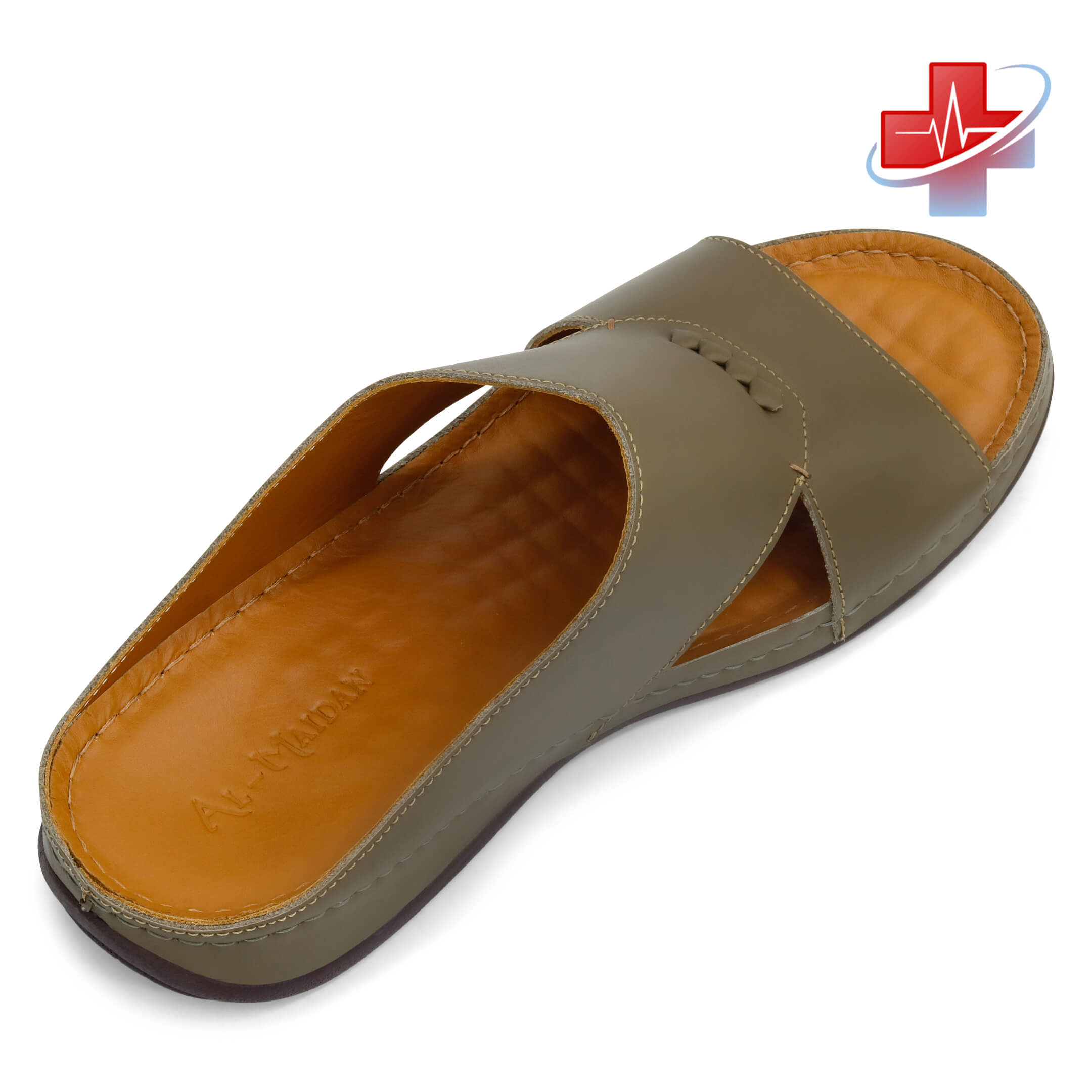 إذا لم تكن قدميك على ما يرام، فإن حياتك ليست على ما يرام أيضًا، ويمكن أن يمثل العثور على الصندل الطبي المثالي للرجال للراحة في الطقس الدافئ تحديًا. أصبح هذا التحدي مع "صنادل الميدان" أسهل قليلاً وستجد أنه سرعان ما يصعد الهواء الدافئ فوق أصابع قدميك بإستخدام الصندل الطبي لدينا. نحن نقدم الصنادل الطبية المُزوَدة بدعم القدمين والراحة المُطلقة. راحة قدمك تبعد نقرة واحدة فقط على موقع albusthan.ae، والذي يوفِّر الراحة للعملاء وأفضل الصنادل الطبية المتاحة اليوم. قد يكون "الميدان" هو الصندل الذي تحتاجه للوصول إلى الشاطئ، حيث يتعين عليك بذل جهد إضافي عند المشي على طول الشاطئ والذي من المحتمل أن يسبب ضغطًا إضافيًا على القدم أو حتى الأحذية الاحترافية التي يمكنك ارتداؤها في العمل لتقليل الإجهاد والضغط من القدمين. فهو ذات ألوان متعددة وتصميمات مختلفة. وهو مصنوع يدويًا في دولة الإمارات العربية المتحدة باستخدام جلد أصلي عالي الجودة بنعل طبي. وهو خفيف الوزن للغاية بالإضافة إلى المظهر الأنيق والراحة القصوى، "الميدان" هو الخيار الأفضل لأي شخص يتطلع إلى استخدامه لفترة طويلة دون إزعاج قدميك وجسمك.