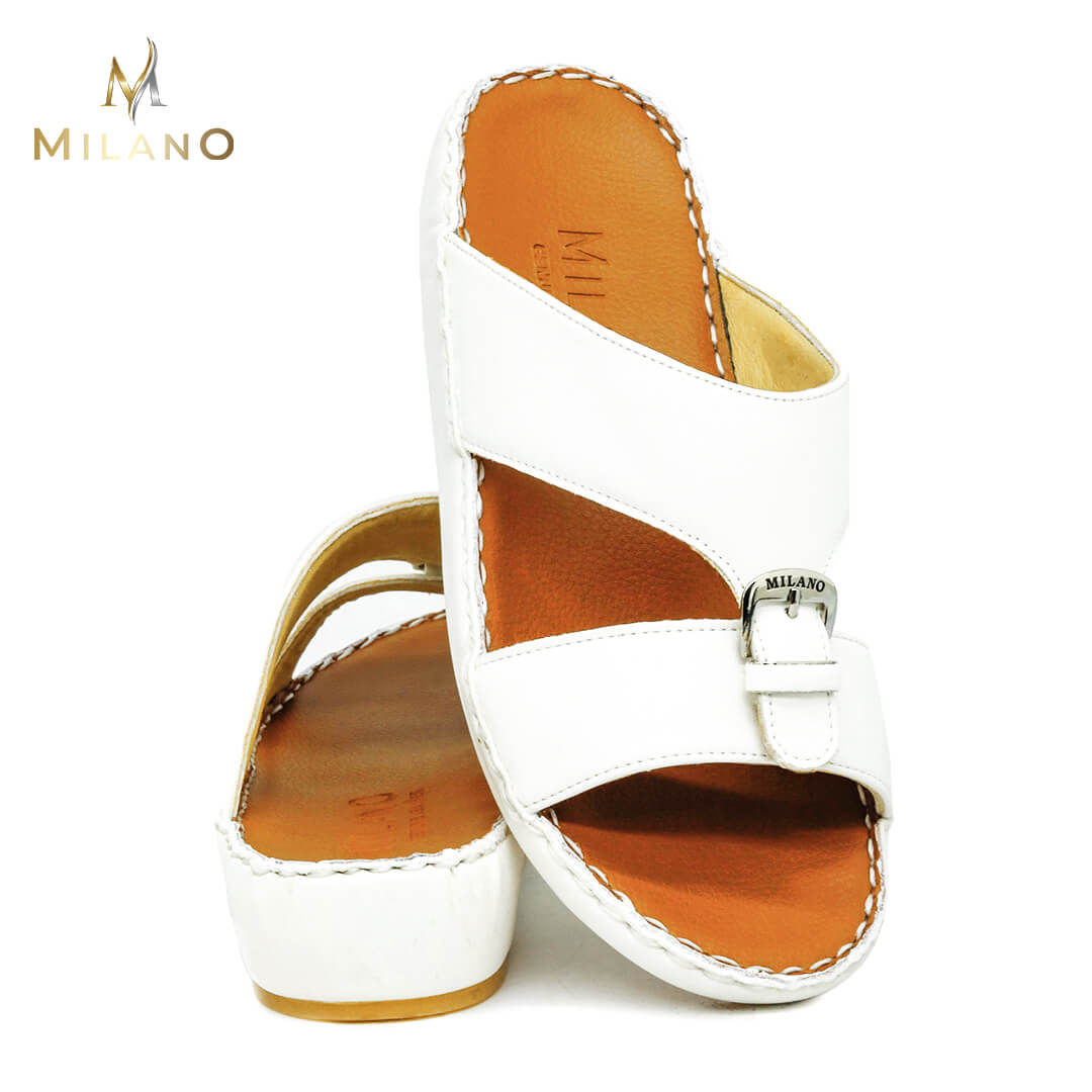 صندل ميلانو مصنوع من خامات عالية الجودة تحافظ على قوتها مما يعني أن الصندل يدوم لفترة طويلة. يتبع هذا الصندل الأسلوب الذي يوازن بين الكلاسيكية والحديثة ، مما يجعله أنيقًا دائمًا بين الصنادل العربية.