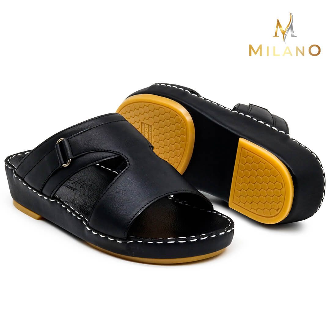 صندل ميلانو مصنوع من خامات عالية الجودة تحافظ على قوتها مما يعني أن الصندل يدوم لفترة طويلة. يتبع هذا الصندل الأسلوب الذي يوازن بين الكلاسيكية والحديثة ، مما يجعله أنيقًا دائمًا بين الصنادل العربية.