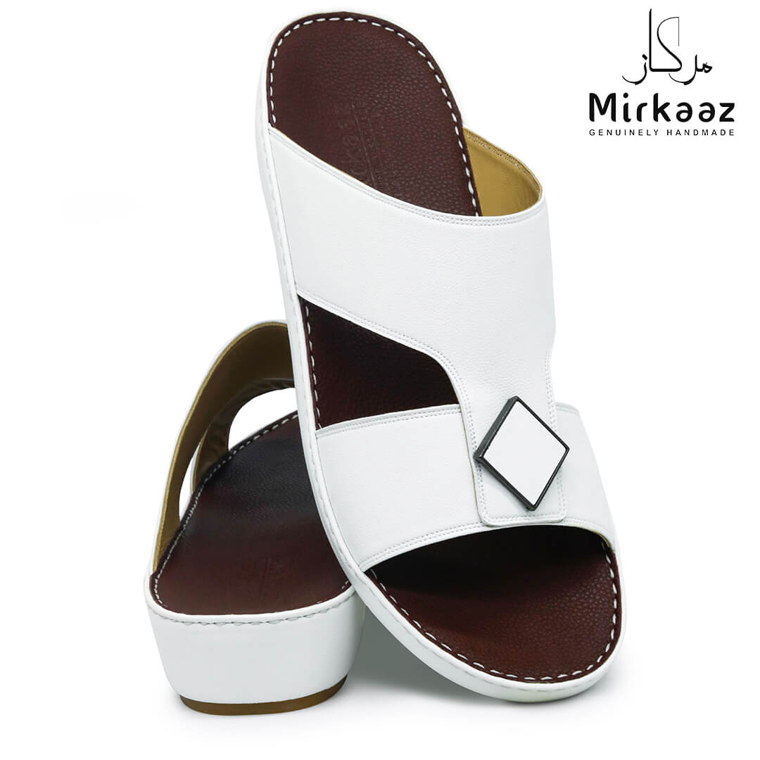 حافظ على راحة وسلامة قدميك من خلال صنادل الجلد المميزة من دار ميركاز في الإمارات العربية المتحدة. فهذا الصندل الغني بالنقوش مثالي لجميع المناسبات. صندل مصنوع من مواد عالية الجودة تتميز بخفة وزنها ومستوى أمانها العالي بفضل النعل "المقاوم للانزلاق". كما أن هذا الصندل الجلدي مصمم ليتحمل الاستعمال لفترة طويلة وتمت صناعته بواسطة متخصصين محترفين في الإمارات. فإذا كنت تريد أن تمشي بكل راحة وأناقة فلا تتردد في اقتناء هذا الصندل. هذا النعل مصنوع من الداخل من مواد عالية الجودة من البولي يوريثان الذي يتميز بالخفة والمتانة. تمت حياكته يدويًا باستخدام خيط مضفر قوي وتدوم الحياكة لفترة طويلة جدًا. تمنع بطانة النعل الداخلية المصنوعة من مواد عديمة الرائحة تراكم أي نوع من الروائح على سطحها مما يجعلها دائمًا نظيفة حتى بعد الاستخدام الطويل. يوفر المصنع ضمان 6 أشهر للحياكة والنعال