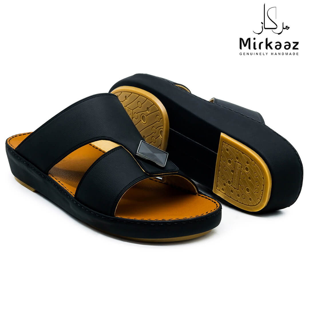 حافظ على راحة وسلامة قدميك من خلال صنادل الجلد المميزة من دار ميركاز في الإمارات العربية المتحدة. فهذا الصندل الغني بالنقوش مثالي لجميع المناسبات. صندل مصنوع من مواد عالية الجودة تتميز بخفة وزنها ومستوى أمانها العالي بفضل النعل "المقاوم للانزلاق". كما أن هذا الصندل الجلدي مصمم ليتحمل الاستعمال لفترة طويلة وتمت صناعته بواسطة متخصصين محترفين في الإمارات. فإذا كنت تريد أن تمشي بكل راحة وأناقة فلا تتردد في اقتناء هذا الصندل. هذا النعل مصنوع من الداخل من مواد عالية الجودة من البولي يوريثان الذي يتميز بالخفة والمتانة. تمت حياكته يدويًا باستخدام خيط مضفر قوي وتدوم الحياكة لفترة طويلة جدًا. تمنع بطانة النعل الداخلية المصنوعة من مواد عديمة الرائحة تراكم أي نوع من الروائح على سطحها مما يجعلها دائمًا نظيفة حتى بعد الاستخدام الطويل. يوفر المصنع ضمان 6 أشهر للحياكة والنعال