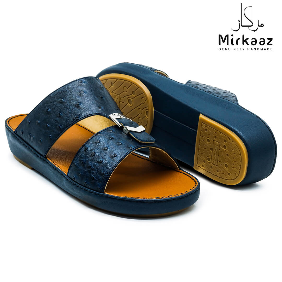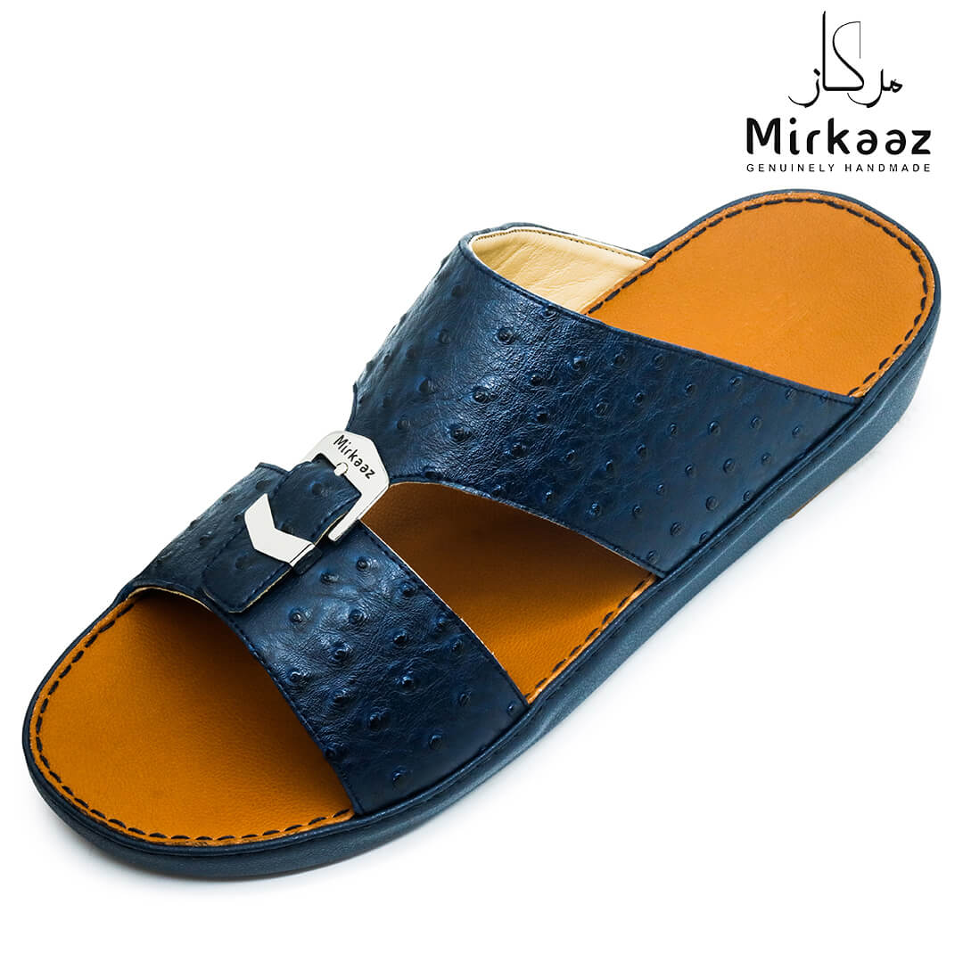 حافظ على راحة وسلامة قدميك من خلال صنادل الجلد المميزة من دار ميركاز في الإمارات العربية المتحدة. فهذا الصندل الغني بالنقوش مثالي لجميع المناسبات. صندل مصنوع من مواد عالية الجودة تتميز بخفة وزنها ومستوى أمانها العالي بفضل النعل "المقاوم للانزلاق". كما أن هذا الصندل الجلدي مصمم ليتحمل الاستعمال لفترة طويلة وتمت صناعته بواسطة متخصصين محترفين في الإمارات. فإذا كنت تريد أن تمشي بكل راحة وأناقة فلا تتردد في اقتناء هذا الصندل. هذا النعل مصنوع من الداخل من مواد عالية الجودة من البولي يوريثان الذي يتميز بالخفة والمتانة. تمت حياكته يدويًا باستخدام خيط مضفر قوي وتدوم الحياكة لفترة طويلة جدًا. تمنع بطانة النعل الداخلية المصنوعة من مواد عديمة الرائحة تراكم أي نوع من الروائح على سطحها مما يجعلها دائمًا نظيفة حتى بعد الاستخدام الطويل. يوفر المصنع ضمان 6 أشهر للحياكة والنعال