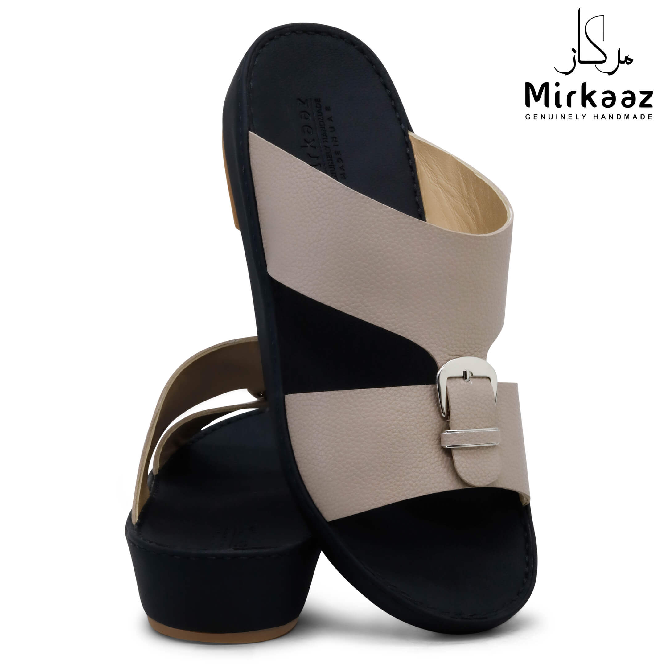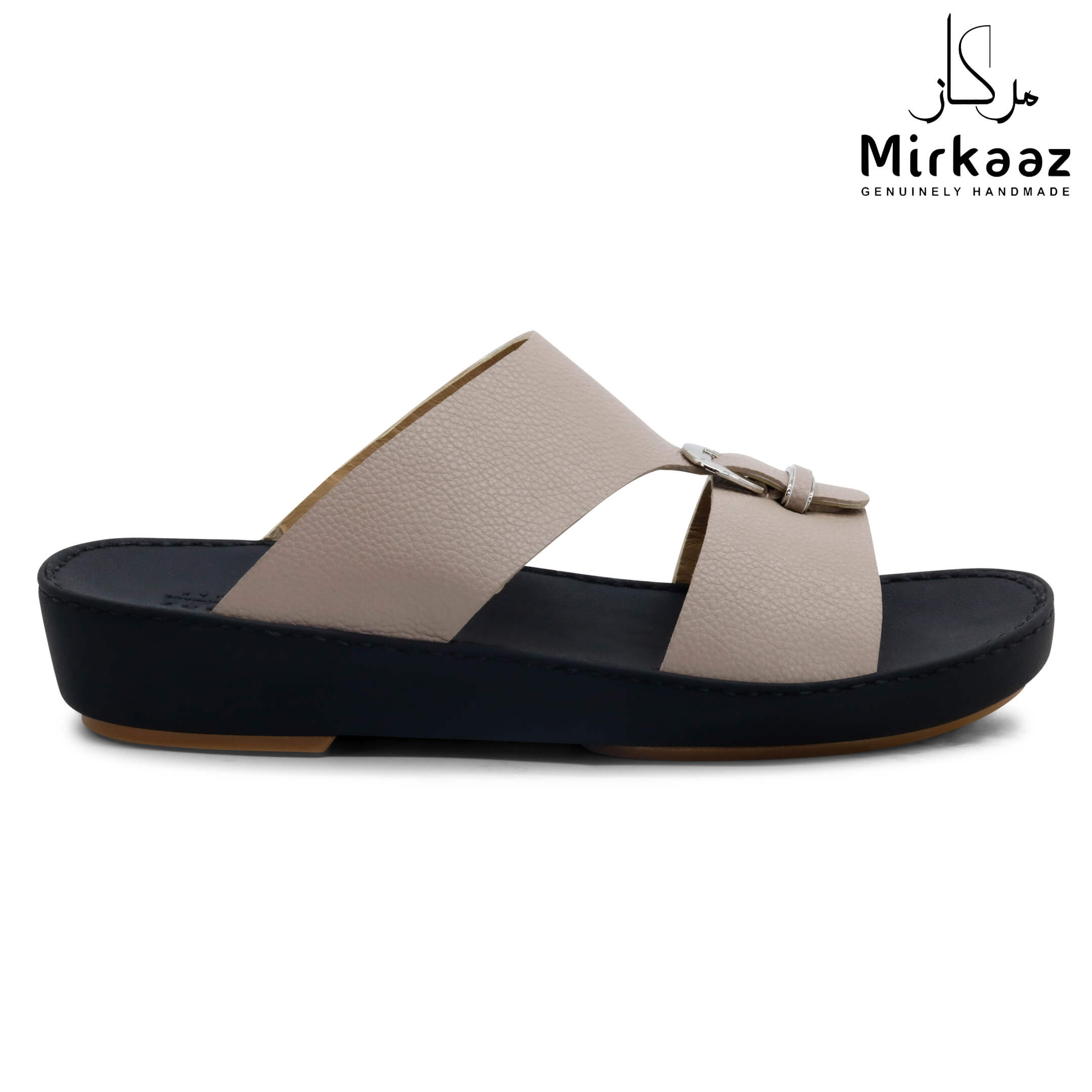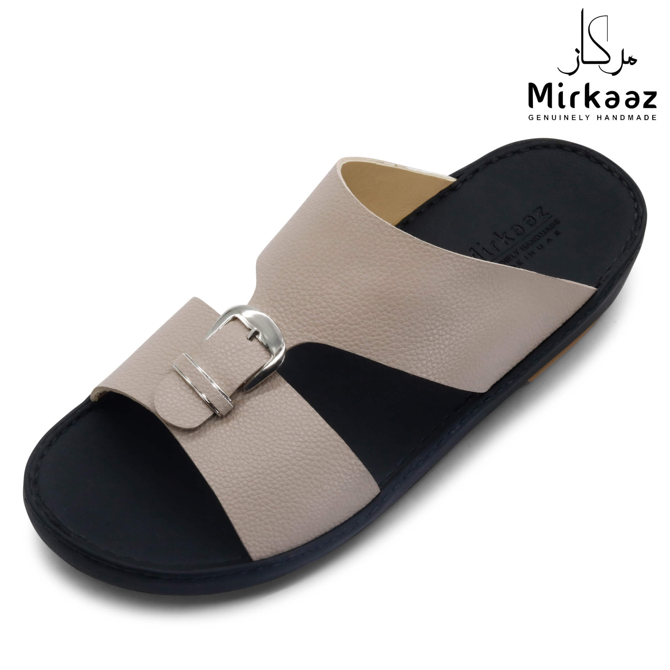 حافظ على راحة وسلامة قدميك من خلال صنادل الجلد المميزة من دار ميركاز في الإمارات العربية المتحدة. فهذا الصندل الغني بالنقوش مثالي لجميع المناسبات. صندل مصنوع من مواد عالية الجودة تتميز بخفة وزنها ومستوى أمانها العالي بفضل النعل "المقاوم للانزلاق". كما أن هذا الصندل الجلدي مصمم ليتحمل الاستعمال لفترة طويلة وتمت صناعته بواسطة متخصصين محترفين في الإمارات. فإذا كنت تريد أن تمشي بكل راحة وأناقة فلا تتردد في اقتناء هذا الصندل. هذا النعل مصنوع من الداخل من مواد عالية الجودة من البولي يوريثان الذي يتميز بالخفة والمتانة. تمت حياكته يدويًا باستخدام خيط مضفر قوي وتدوم الحياكة لفترة طويلة جدًا. تمنع بطانة النعل الداخلية المصنوعة من مواد عديمة الرائحة تراكم أي نوع من الروائح على سطحها مما يجعلها دائمًا نظيفة حتى بعد الاستخدام الطويل. يوفر المصنع ضمان 6 أشهر للحياكة والنعال