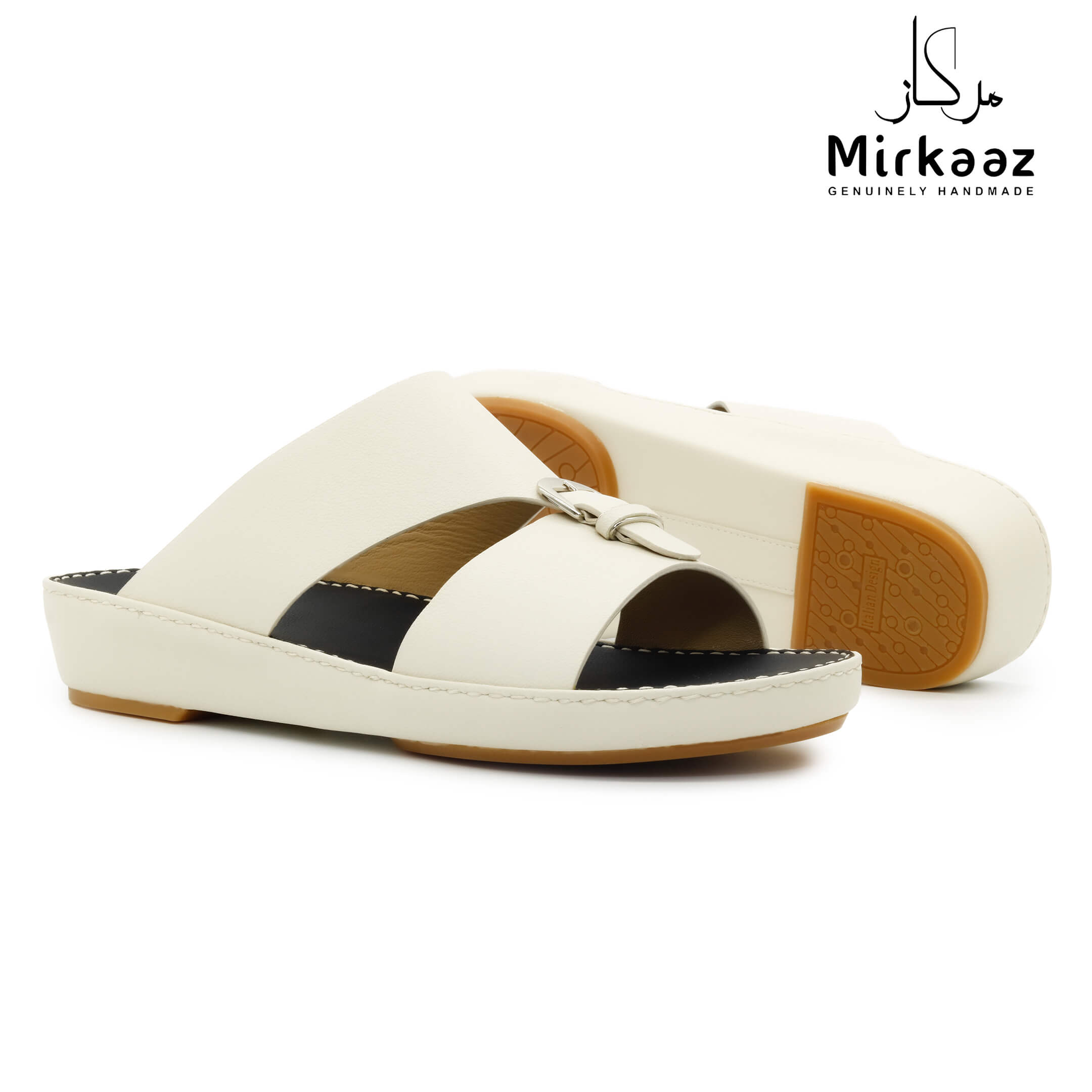 حافظ على راحة وسلامة قدميك من خلال صنادل الجلد المميزة من دار ميركاز في الإمارات العربية المتحدة. فهذا الصندل الغني بالنقوش مثالي لجميع المناسبات. صندل مصنوع من مواد عالية الجودة تتميز بخفة وزنها ومستوى أمانها العالي بفضل النعل "المقاوم للانزلاق". كما أن هذا الصندل الجلدي مصمم ليتحمل الاستعمال لفترة طويلة وتمت صناعته بواسطة متخصصين محترفين في الإمارات. فإذا كنت تريد أن تمشي بكل راحة وأناقة فلا تتردد في اقتناء هذا الصندل. هذا النعل مصنوع من الداخل من مواد عالية الجودة من البولي يوريثان الذي يتميز بالخفة والمتانة. تمت حياكته يدويًا باستخدام خيط مضفر قوي وتدوم الحياكة لفترة طويلة جدًا. تمنع بطانة النعل الداخلية المصنوعة من مواد عديمة الرائحة تراكم أي نوع من الروائح على سطحها مما يجعلها دائمًا نظيفة حتى بعد الاستخدام الطويل. يوفر المصنع ضمان 6 أشهر للحياكة والنعال