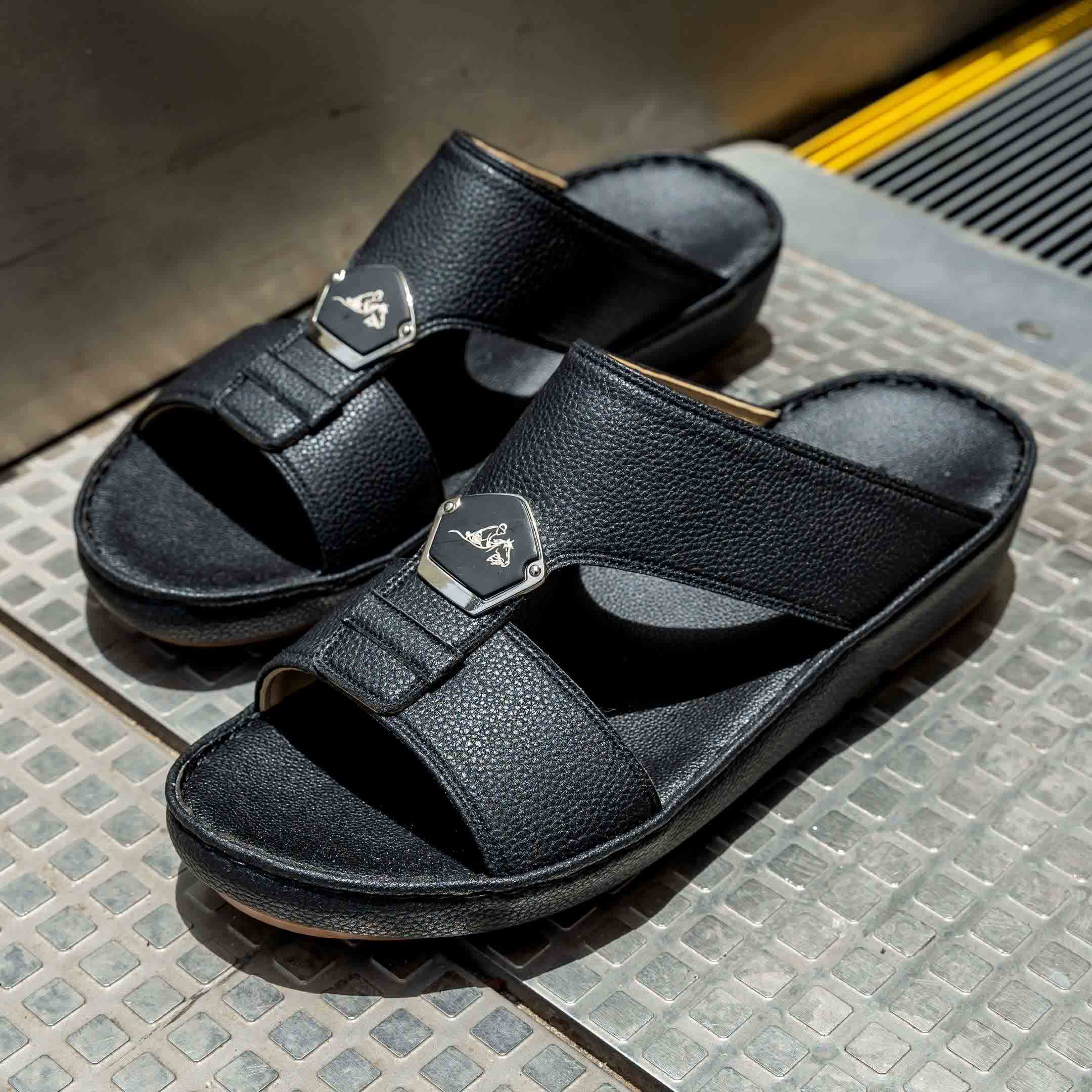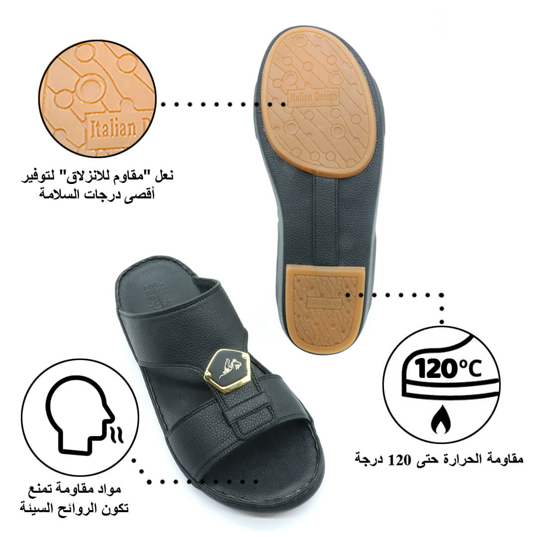 حافظ على راحة وسلامة قدميك من خلال صنادل الجلد المميزة من دار ميركاز في الإمارات العربية المتحدة. فهذا النعال الغني بالنقوش مثالي لجميع المناسبات. نعال مصنوع من مواد عالية الجودة تتميز بخفة وزنها ومستوى أمانها العالي بفضل النعل "المقاوم للانزلاق". كما أن هذا النعال الجلدي مصمم ليتحمل الاستعمال لفترة طويلة وتمت صناعته بواسطة متخصصين محترفين في الإمارات. فإذا كنت تريد أن تمشي بكل راحة وأناقة فلا تتردد في اقتناء هذا النعال. هذا النعل مصنوع من الداخل من مواد عالية الجودة من البولي يوريثان الذي يتميز بالخفة والمتانة. تمت حياكته يدويًا باستخدام خيط مضفر قوي وتدوم الحياكة لفترة طويلة جدًا. تمنع بطانة النعل الداخلية المصنوعة من مواد عديمة الرائحة تراكم أي نوع من الروائح على سطحها مما يجعلها دائمًا نظيفة حتى بعد الاستخدام الطويل. يوفر المصنع ضمان 6 أشهر للحياكة والنعال