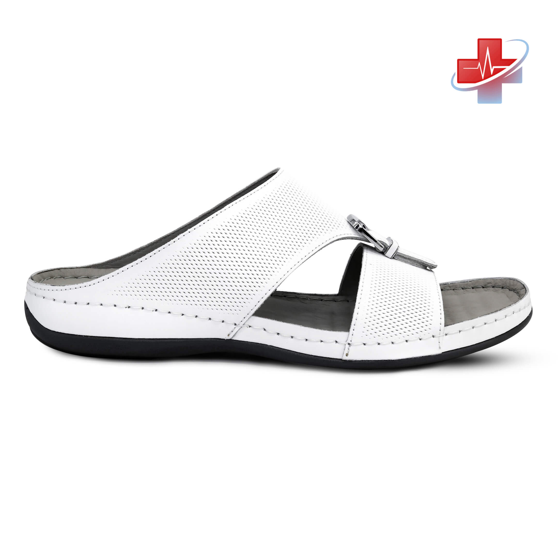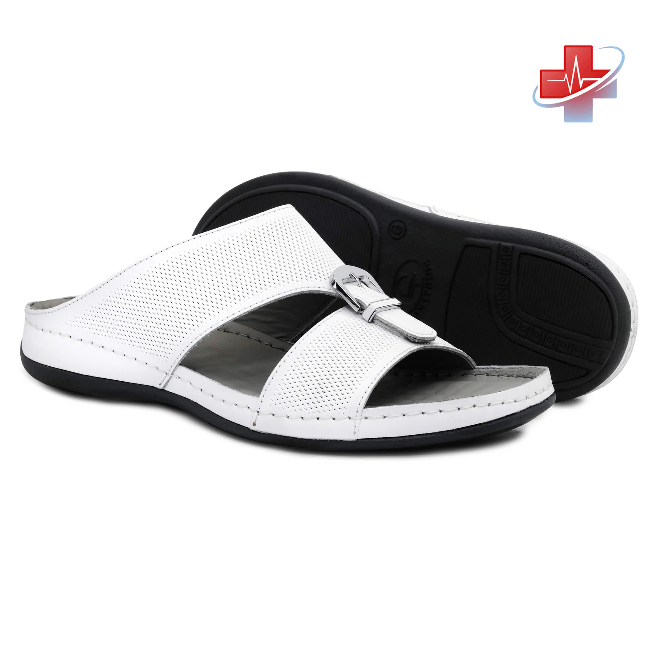 إذا لم تكن قدميك على ما يرام، فإن حياتك ليست على ما يرام أيضًا، ويمكن أن يمثل العثور على الصندل الطبي المثالي للرجال للراحة في الطقس الدافئ تحديًا. أصبح هذا التحدي مع "صنادل الميدان" أسهل قليلاً وستجد أنه سرعان ما يصعد الهواء الدافئ فوق أصابع قدميك بإستخدام الصندل الطبي لدينا. نحن نقدم الصنادل الطبية المُزوَدة بدعم القدمين والراحة المُطلقة. راحة قدمك تبعد نقرة واحدة فقط على موقع albusthan.ae، والذي يوفِّر الراحة للعملاء وأفضل الصنادل الطبية المتاحة اليوم. قد يكون "الميدان" هو الصندل الذي تحتاجه للوصول إلى الشاطئ، حيث يتعين عليك بذل جهد إضافي عند المشي على طول الشاطئ والذي من المحتمل أن يسبب ضغطًا إضافيًا على القدم أو حتى الأحذية الاحترافية التي يمكنك ارتداؤها في العمل لتقليل الإجهاد والضغط من القدمين. فهو ذات ألوان متعددة وتصميمات مختلفة. وهو مصنوع يدويًا في دولة الإمارات العربية المتحدة باستخدام جلد أصلي عالي الجودة بنعل طبي. وهو خفيف الوزن للغاية بالإضافة إلى المظهر الأنيق والراحة القصوى، "الميدان" هو الخيار الأفضل لأي شخص يتطلع إلى استخدامه لفترة طويلة دون إزعاج قدميك وجسمك.