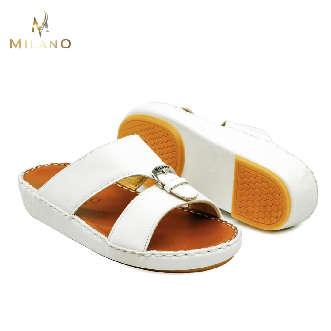 صندل ميلانو مصنوع من خامات عالية الجودة تحافظ على قوتها مما يعني أن الصندل يدوم لفترة طويلة. يتبع هذا الصندل الأسلوب الذي يوازن بين الكلاسيكية والحديثة ، مما يجعله أنيقًا دائمًا بين الصنادل العربية.