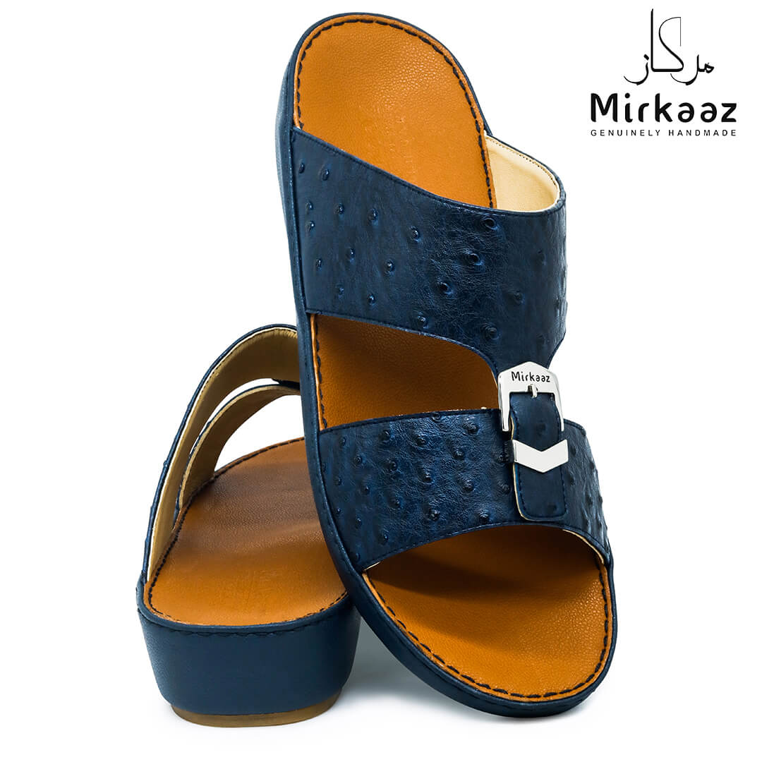 حافظ على راحة وسلامة قدميك من خلال صنادل الجلد المميزة من دار ميركاز في الإمارات العربية المتحدة. فهذا الصندل الغني بالنقوش مثالي لجميع المناسبات. صندل مصنوع من مواد عالية الجودة تتميز بخفة وزنها ومستوى أمانها العالي بفضل النعل "المقاوم للانزلاق". كما أن هذا الصندل الجلدي مصمم ليتحمل الاستعمال لفترة طويلة وتمت صناعته بواسطة متخصصين محترفين في الإمارات. فإذا كنت تريد أن تمشي بكل راحة وأناقة فلا تتردد في اقتناء هذا الصندل. هذا النعل مصنوع من الداخل من مواد عالية الجودة من البولي يوريثان الذي يتميز بالخفة والمتانة. تمت حياكته يدويًا باستخدام خيط مضفر قوي وتدوم الحياكة لفترة طويلة جدًا. تمنع بطانة النعل الداخلية المصنوعة من مواد عديمة الرائحة تراكم أي نوع من الروائح على سطحها مما يجعلها دائمًا نظيفة حتى بعد الاستخدام الطويل. يوفر المصنع ضمان 6 أشهر للحياكة والنعال