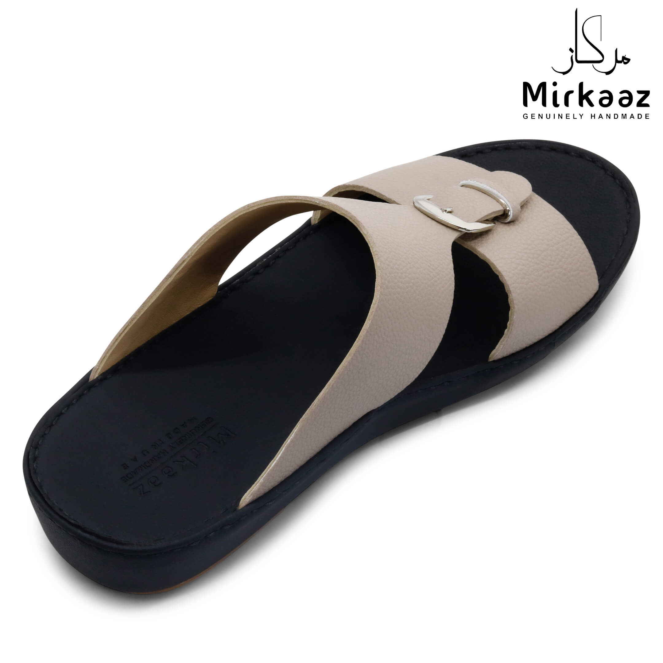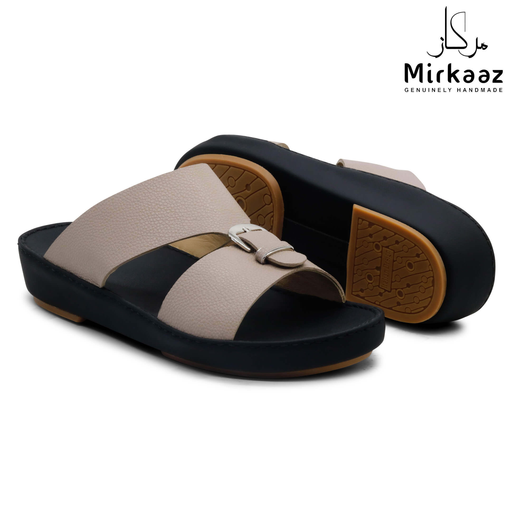 حافظ على راحة وسلامة قدميك من خلال صنادل الجلد المميزة من دار ميركاز في الإمارات العربية المتحدة. فهذا الصندل الغني بالنقوش مثالي لجميع المناسبات. صندل مصنوع من مواد عالية الجودة تتميز بخفة وزنها ومستوى أمانها العالي بفضل النعل "المقاوم للانزلاق". كما أن هذا الصندل الجلدي مصمم ليتحمل الاستعمال لفترة طويلة وتمت صناعته بواسطة متخصصين محترفين في الإمارات. فإذا كنت تريد أن تمشي بكل راحة وأناقة فلا تتردد في اقتناء هذا الصندل. هذا النعل مصنوع من الداخل من مواد عالية الجودة من البولي يوريثان الذي يتميز بالخفة والمتانة. تمت حياكته يدويًا باستخدام خيط مضفر قوي وتدوم الحياكة لفترة طويلة جدًا. تمنع بطانة النعل الداخلية المصنوعة من مواد عديمة الرائحة تراكم أي نوع من الروائح على سطحها مما يجعلها دائمًا نظيفة حتى بعد الاستخدام الطويل. يوفر المصنع ضمان 6 أشهر للحياكة والنعال