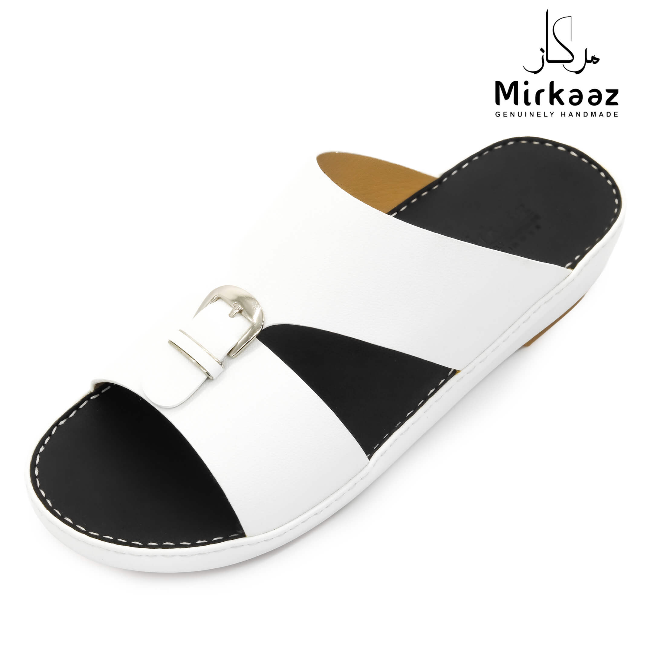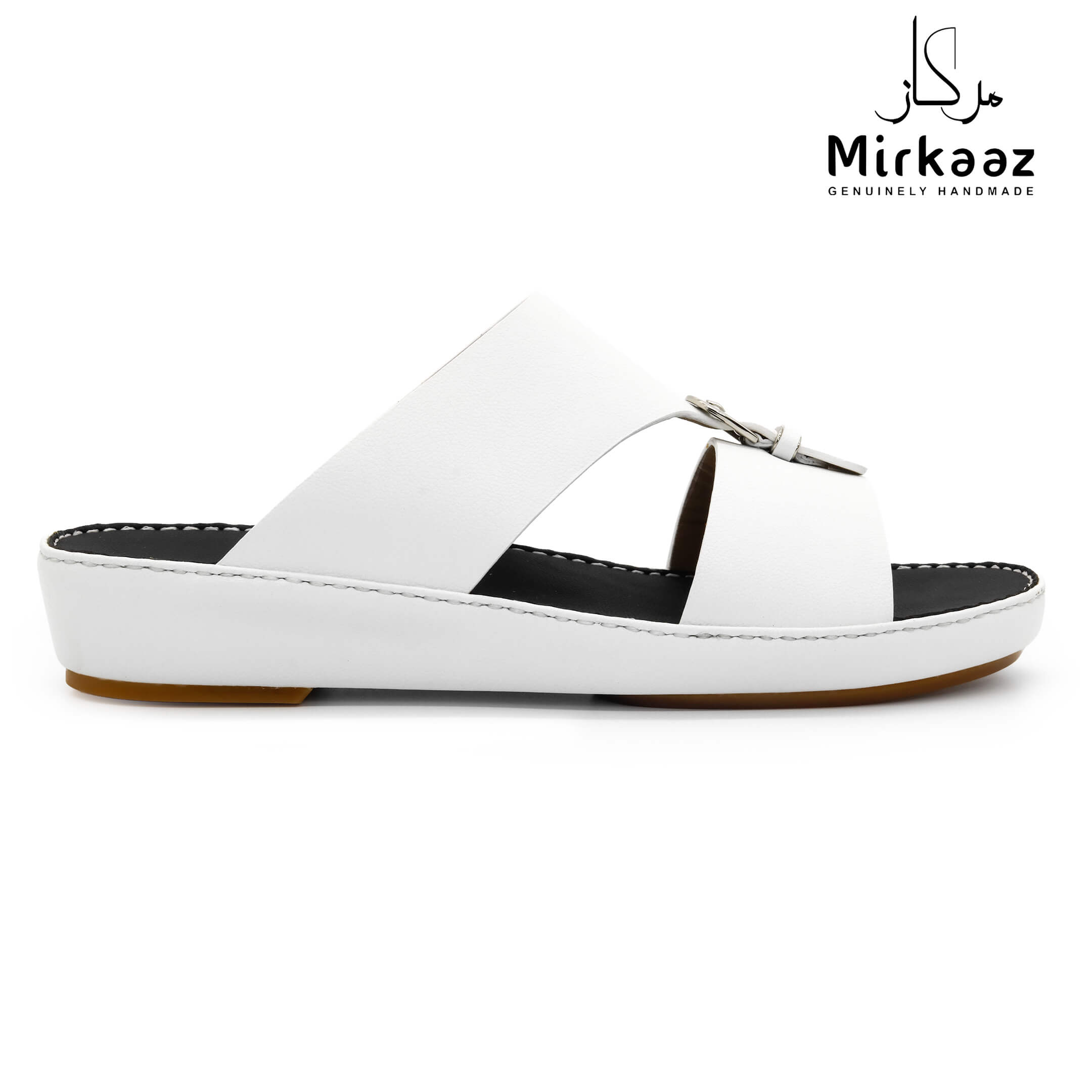 حافظ على راحة وسلامة قدميك من خلال صنادل الجلد المميزة من دار ميركاز في الإمارات العربية المتحدة. فهذا الصندل الغني بالنقوش مثالي لجميع المناسبات. صندل مصنوع من مواد عالية الجودة تتميز بخفة وزنها ومستوى أمانها العالي بفضل النعل "المقاوم للانزلاق". كما أن هذا الصندل الجلدي مصمم ليتحمل الاستعمال لفترة طويلة وتمت صناعته بواسطة متخصصين محترفين في الإمارات. فإذا كنت تريد أن تمشي بكل راحة وأناقة فلا تتردد في اقتناء هذا الصندل. هذا النعل مصنوع من الداخل من مواد عالية الجودة من البولي يوريثان الذي يتميز بالخفة والمتانة. تمت حياكته يدويًا باستخدام خيط مضفر قوي وتدوم الحياكة لفترة طويلة جدًا. تمنع بطانة النعل الداخلية المصنوعة من مواد عديمة الرائحة تراكم أي نوع من الروائح على سطحها مما يجعلها دائمًا نظيفة حتى بعد الاستخدام الطويل. يوفر المصنع ضمان 6 أشهر للحياكة والنعال