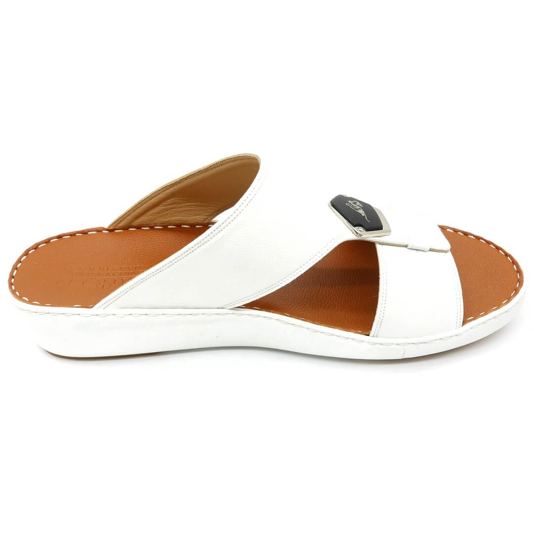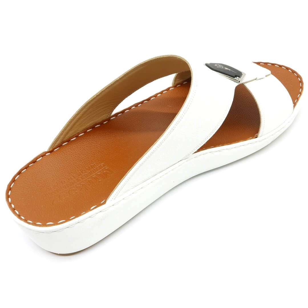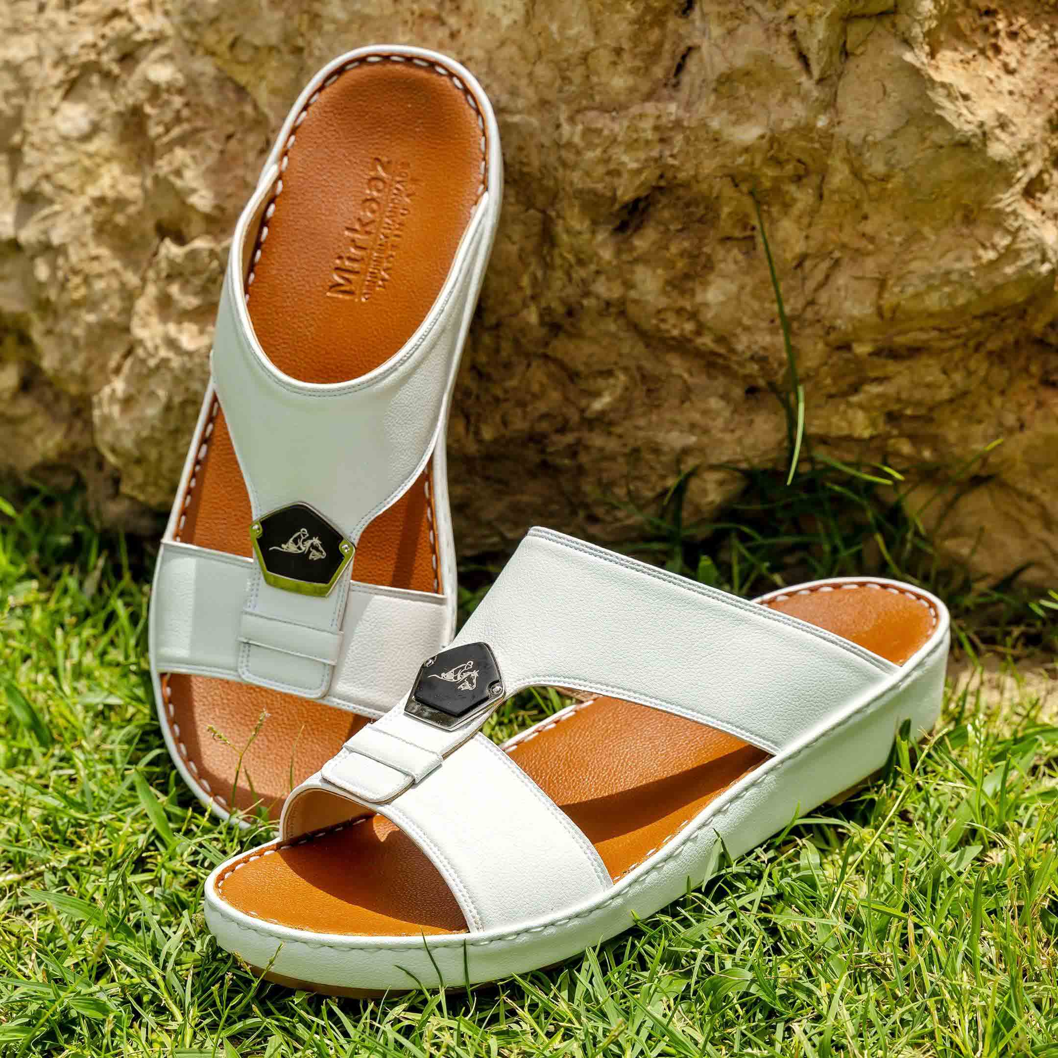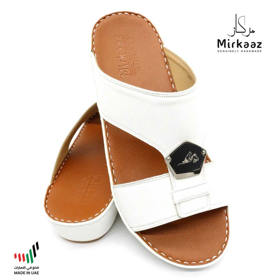 حافظ على راحة وسلامة قدميك من خلال صنادل الجلد المميزة من دار ميركاز في الإمارات العربية المتحدة. فهذا النعال الغني بالنقوش مثالي لجميع المناسبات. نعال مصنوع من مواد عالية الجودة تتميز بخفة وزنها ومستوى أمانها العالي بفضل النعل "المقاوم للانزلاق". كما أن هذا النعال الجلدي مصمم ليتحمل الاستعمال لفترة طويلة وتمت صناعته بواسطة متخصصين محترفين في الإمارات. فإذا كنت تريد أن تمشي بكل راحة وأناقة فلا تتردد في اقتناء هذا النعال. هذا النعل مصنوع من الداخل من مواد عالية الجودة من البولي يوريثان الذي يتميز بالخفة والمتانة. تمت حياكته يدويًا باستخدام خيط مضفر قوي وتدوم الحياكة لفترة طويلة جدًا. تمنع بطانة النعل الداخلية المصنوعة من مواد عديمة الرائحة تراكم أي نوع من الروائح على سطحها مما يجعلها دائمًا نظيفة حتى بعد الاستخدام الطويل. يوفر المصنع ضمان 6 أشهر للحياكة والنعال