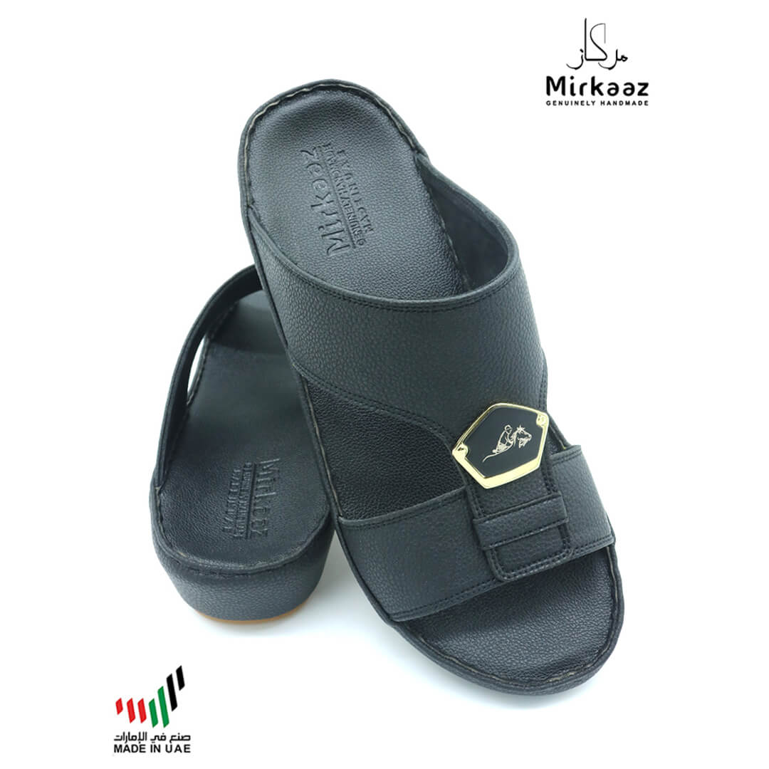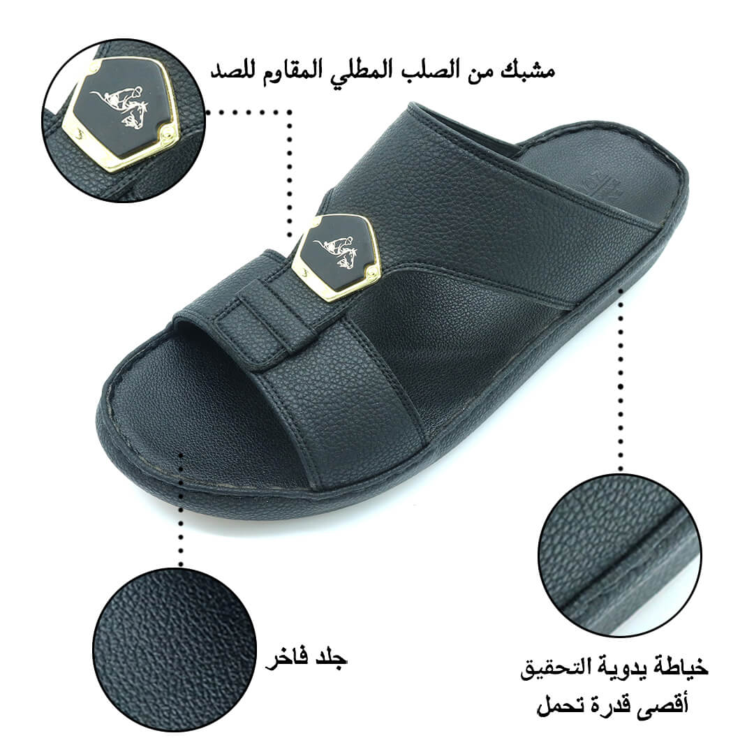 حافظ على راحة وسلامة قدميك من خلال صنادل الجلد المميزة من دار ميركاز في الإمارات العربية المتحدة. فهذا النعال الغني بالنقوش مثالي لجميع المناسبات. نعال مصنوع من مواد عالية الجودة تتميز بخفة وزنها ومستوى أمانها العالي بفضل النعل "المقاوم للانزلاق". كما أن هذا النعال الجلدي مصمم ليتحمل الاستعمال لفترة طويلة وتمت صناعته بواسطة متخصصين محترفين في الإمارات. فإذا كنت تريد أن تمشي بكل راحة وأناقة فلا تتردد في اقتناء هذا النعال. هذا النعل مصنوع من الداخل من مواد عالية الجودة من البولي يوريثان الذي يتميز بالخفة والمتانة. تمت حياكته يدويًا باستخدام خيط مضفر قوي وتدوم الحياكة لفترة طويلة جدًا. تمنع بطانة النعل الداخلية المصنوعة من مواد عديمة الرائحة تراكم أي نوع من الروائح على سطحها مما يجعلها دائمًا نظيفة حتى بعد الاستخدام الطويل. يوفر المصنع ضمان 6 أشهر للحياكة والنعال