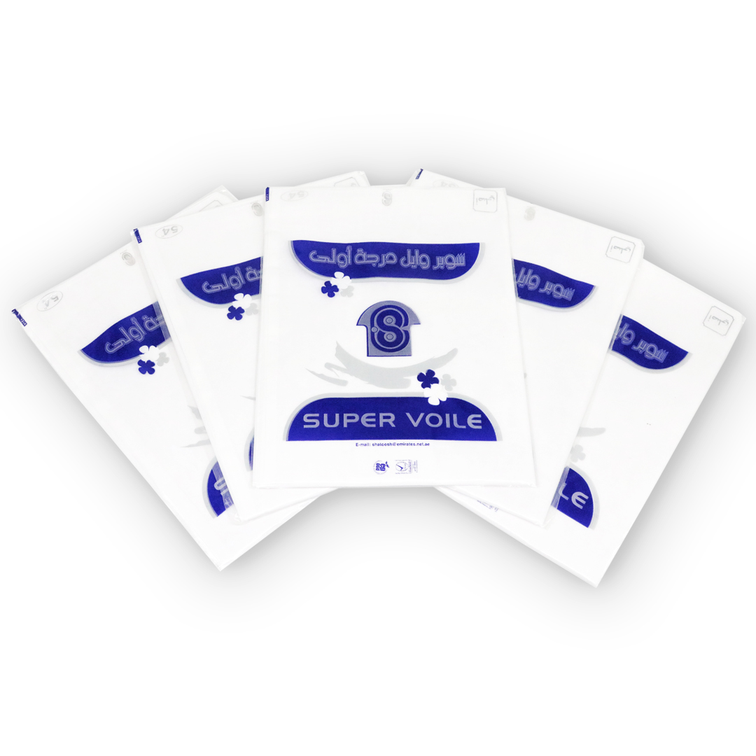 سوبر وايل هي غترة سادة أساسية تتوفر بثمن مناسب. وهي أيضًا متاحة بالكثير من التصميمات والألوان مثل الأبيض الثلجي والأزرق الفاتح.