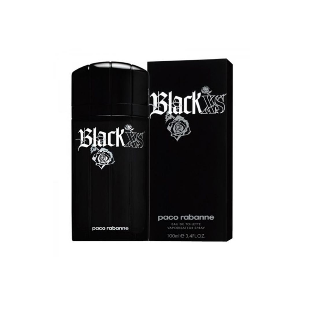 Discover the Paco Rabanne Black XS (Black Excess) Eau de Toilette; an alluring fragrance that blends sweet, spicy accords with deep, woody undertones for a captivating olfactory experience.