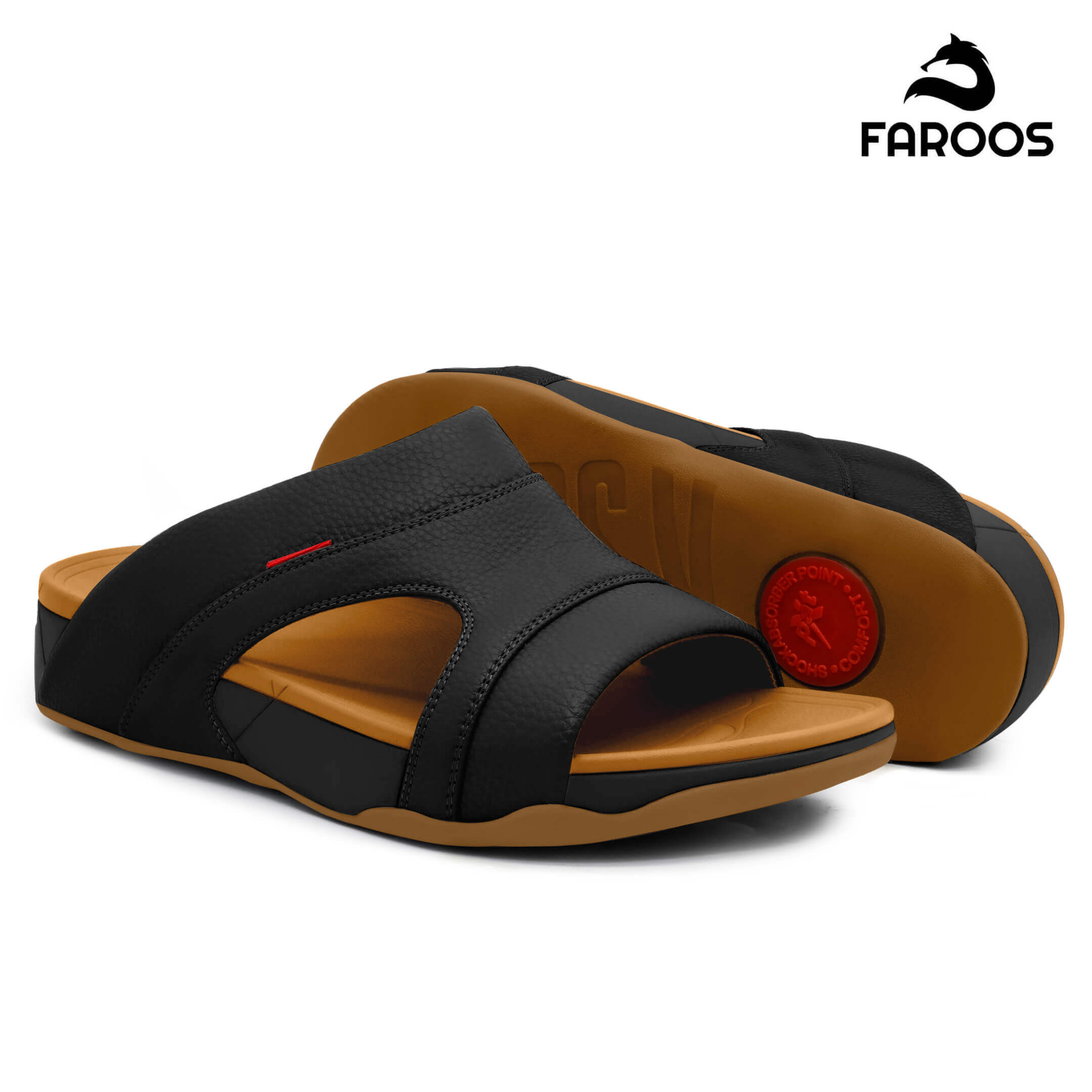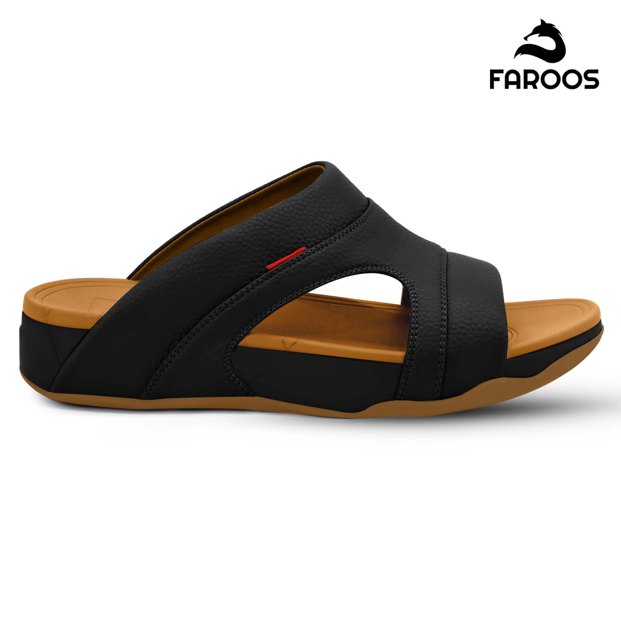 Faroos[F367]M133 Black Tan Gents Arabic Sandal